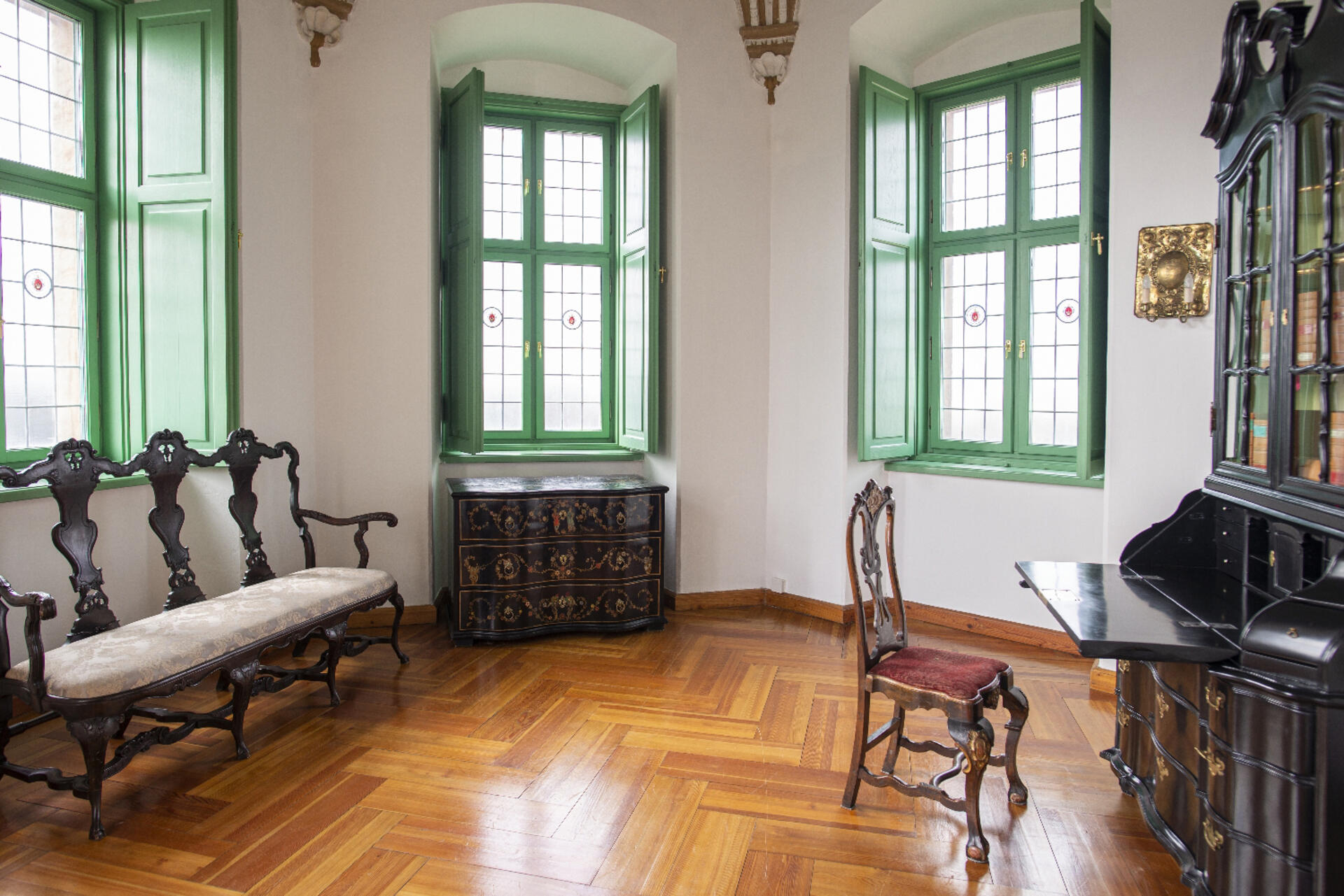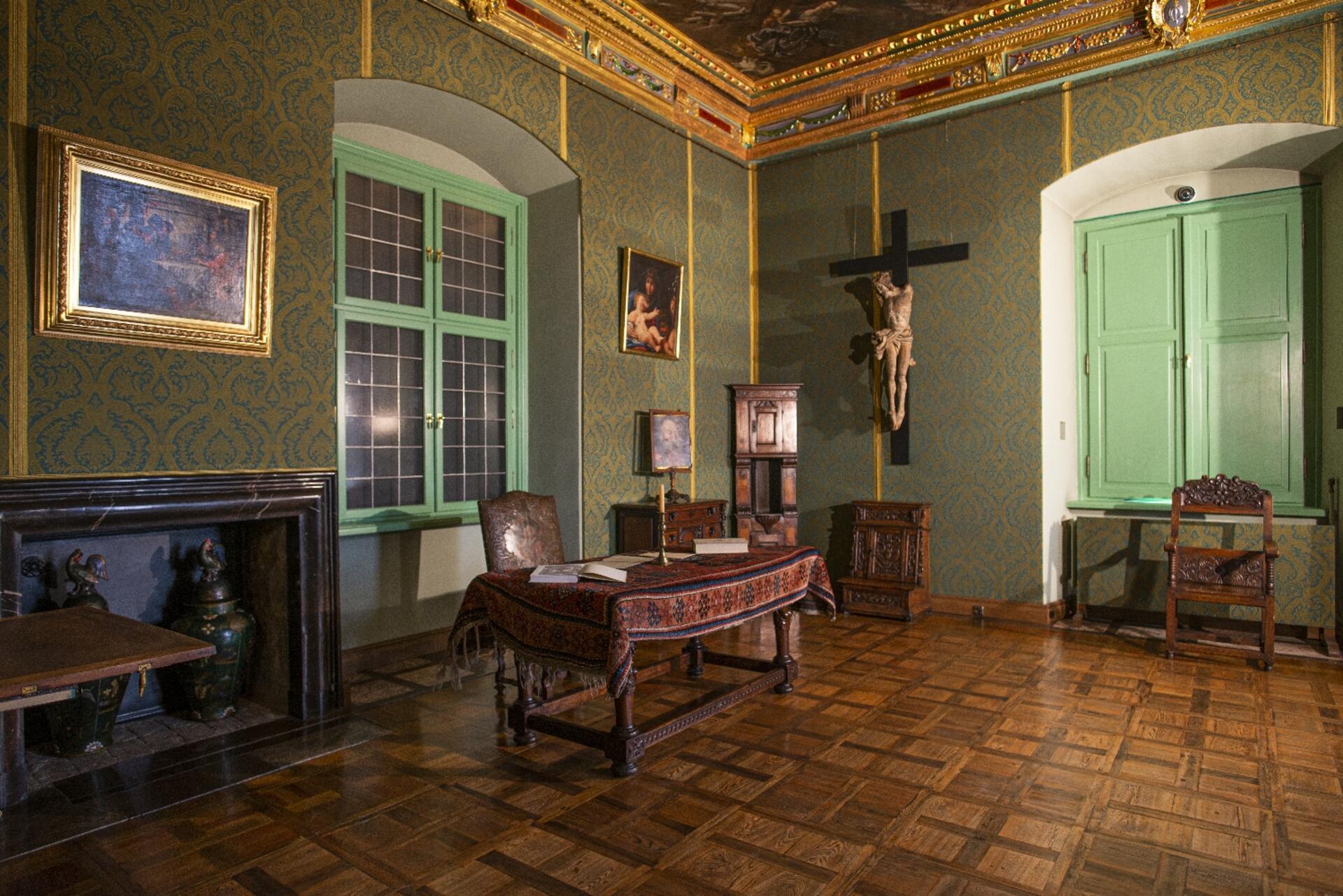 Pełnił funkcję gościnnej sypialni-gabinetu. Strop podobnie jak w Apartamencie Biskupim, w złoconej oprawie z herbami rodowymi fundatora, zdobi centralnie umieszczone płótno ze sceną Pożaru Troi. W narożnikach widnieją domalowane później alegorie Czterech Żywiołów.