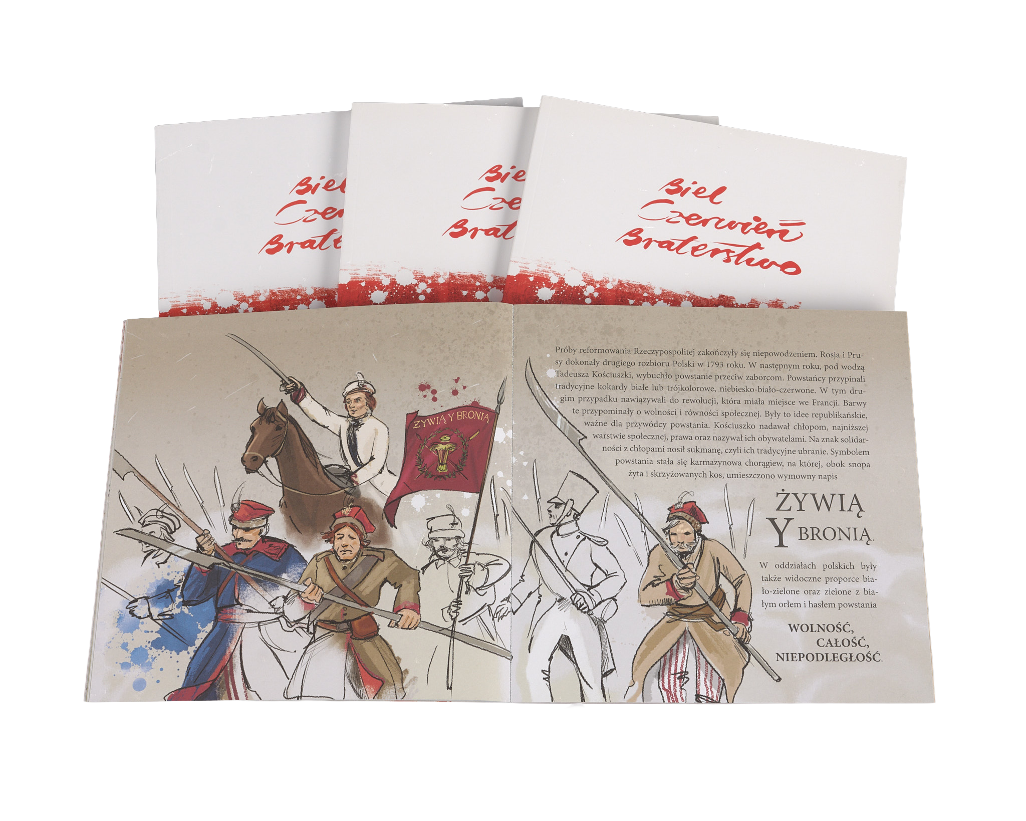 Biel, czerwień, braterstwo to ilustrowana publikacja wydana z okazji 100. rocznicy odzyskania przez Polskę niepodległości. Książka w przystępny i atrakcyjny sposób opowiada o historii kształtowania się biało-czerwonych barw narodowych – jednego z najważniejszych symboli polskiej tożsamości. Przeplatając się na przestrzeni wieków z innymi kolorami, biel i czerwień towarzyszyły Polakom w kluczowych momentach dziejowych, stając się znakiem wolności, solidarności i wspólnoty. Publikacja ma formę barwnej opowieści, która przybliża historię Polski w sposób zrozumiały i angażujący, szczególnie dla młodszych odbiorców, ale także dla wszystkich zainteresowanych symboliką narodową i dziejami ojczyzny.