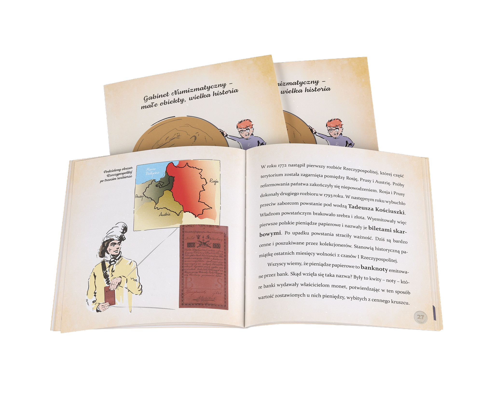 Publikacja edukacyjna przybliża historię pieniądza na obszarze historycznej północnej Małopolski, nawiązując do treści prezentowanych na wystawie stałej Gabinet Numizmatyczny. W przystępny i atrakcyjny sposób ukazuje rolę pieniądza oraz jego ewolucję na tle dziejów Polski, pozwalając lepiej zrozumieć zmiany zachodzące w gospodarce i życiu codziennym na przestrzeni wieków.