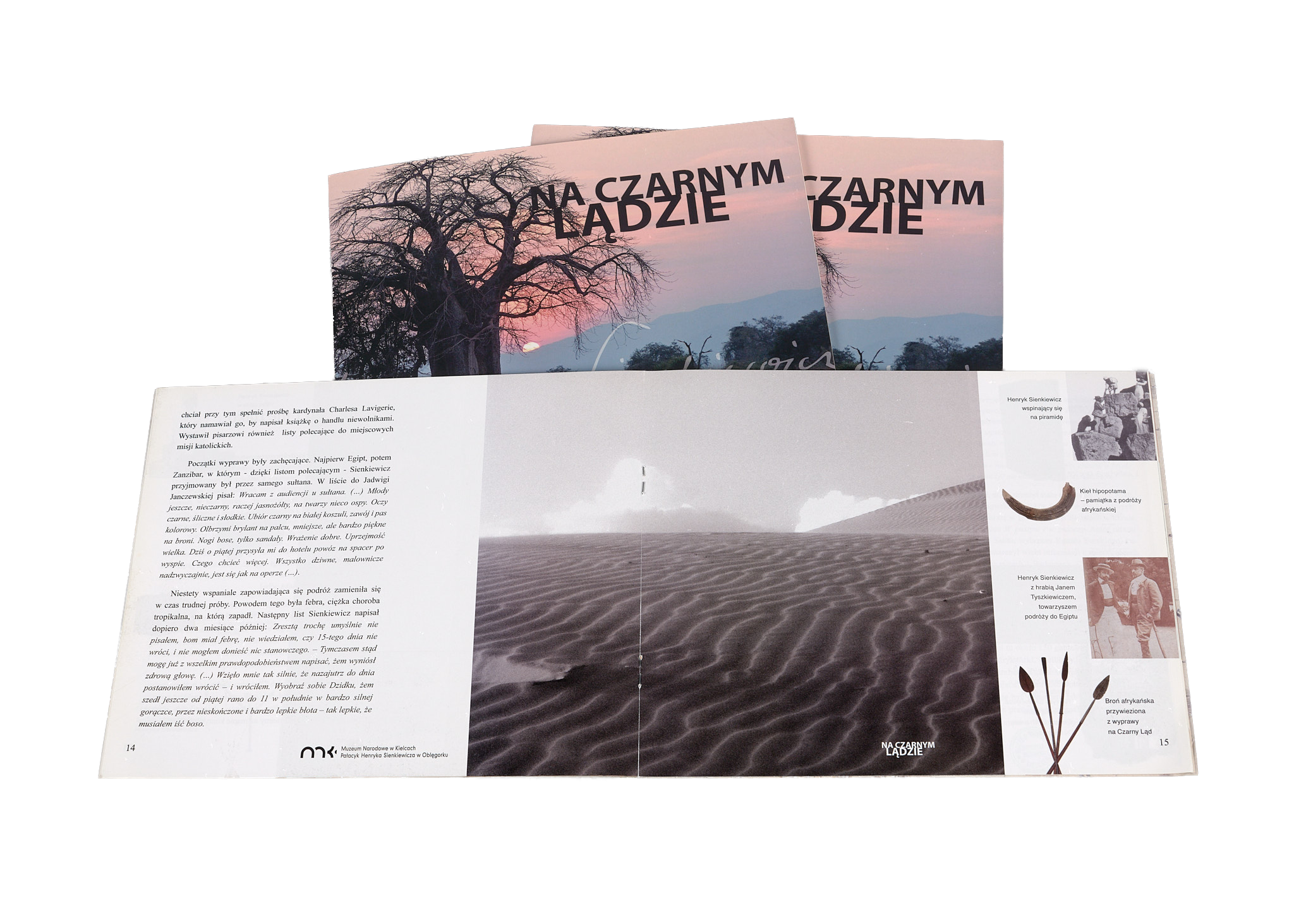 Książeczka edukacyjna, pełniąca jednocześnie funkcję katalogu wystawy czasowej o tym samym tytule, zaprasza czytelników w podróż śladami Henryka Sienkiewicza. Tekst oparto na motywach W pustyni i w puszczy oraz na relacjach z zagranicznych wypraw pisarza, dzięki czemu publikacja łączy literacką przygodę z faktograficznym ujęciem świata, który fascynował noblistę. Wydawnictwo wzbogacają liczne fotografie – zarówno archiwalne, jak i współczesne – a także rysunki, w tym wykonane ręką Sienkiewicza, tworząc barwną i inspirującą opowieść o Afryce widzianej oczami autora.