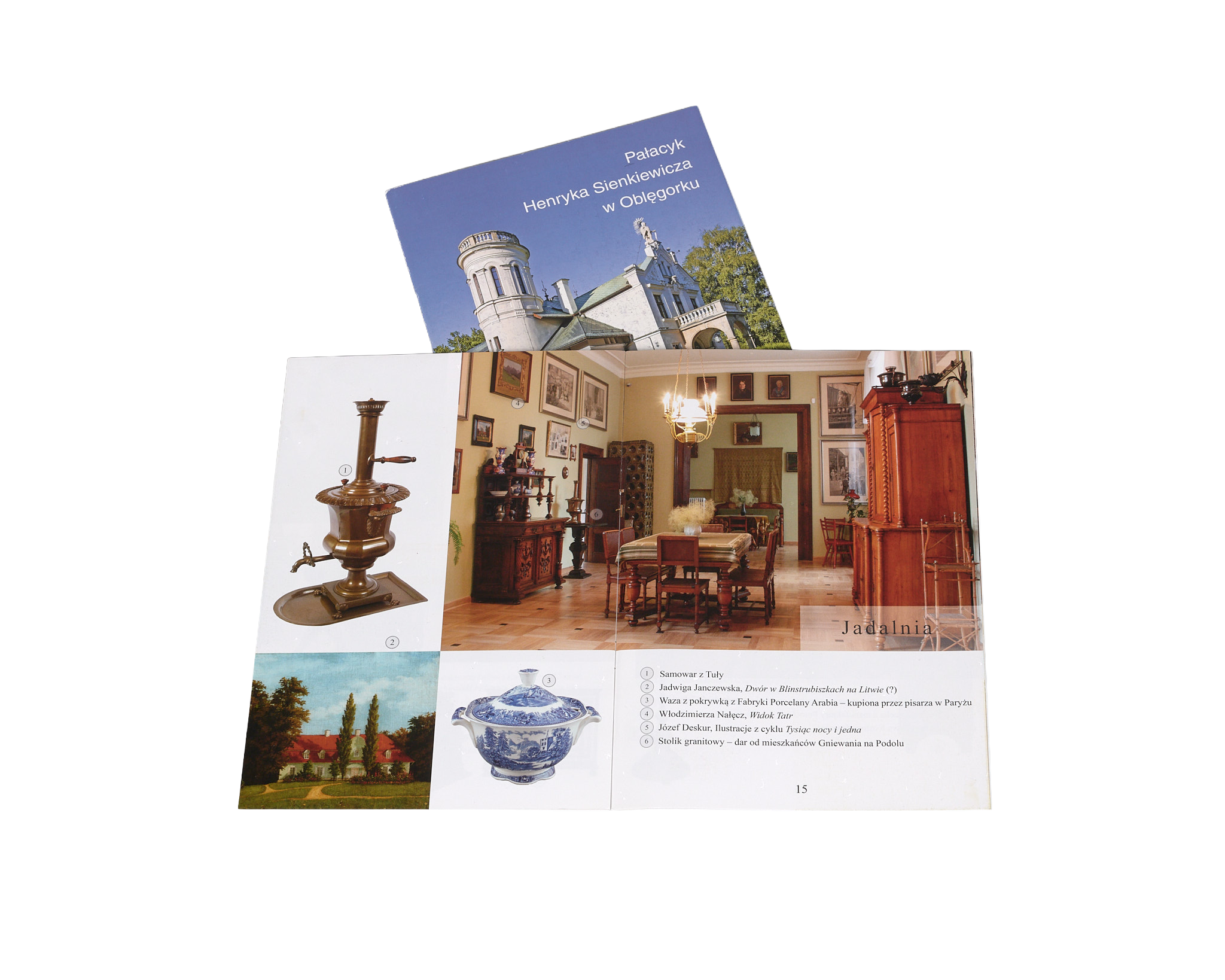 Przewodnik po Pałacyku Henryka Sienkiewicza w Oblęgorku to publikacja o charakterze informacyjnym i edukacyjnym, przybliżająca historię rezydencji oraz jej związek z życiem i twórczością noblisty. Książka została podzielona na część historyczno-biograficzną oraz szczegółowy opis poszczególnych sal muzealnych wraz z ich wyposażeniem.